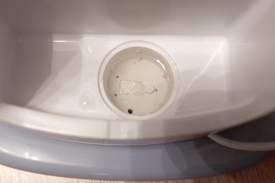 После каждого использования, резервуар следует сливать и тщательно прополаскивать. Также обязательно протирать место под резервуаром. По завершении работы с пятью вещами и очисткой мягкой мебели в течение 10 минут, мы отключили прибор от сети и извлекли резервуар. Слили остатки в раковину и вернулись к прибору. В углублении для резервуара оставалась вода.