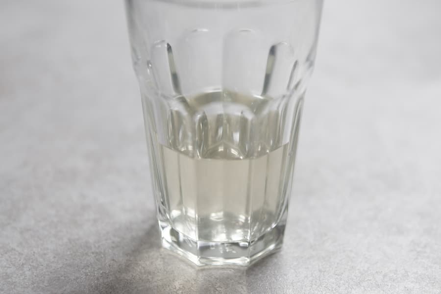 Вынули фильтр и промокнули жидкость тряпкой. Чтобы продемонстрировать количество собравшейся в отверстии воды, мы выжали тряпку в стакан объемом 350 мл.