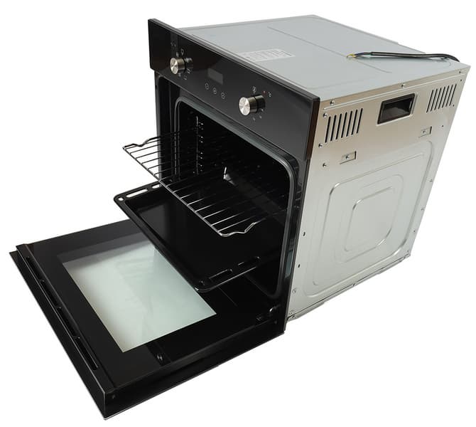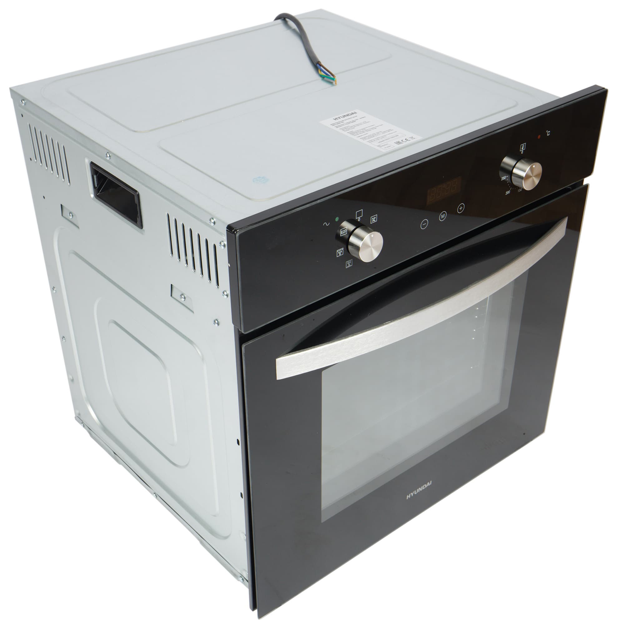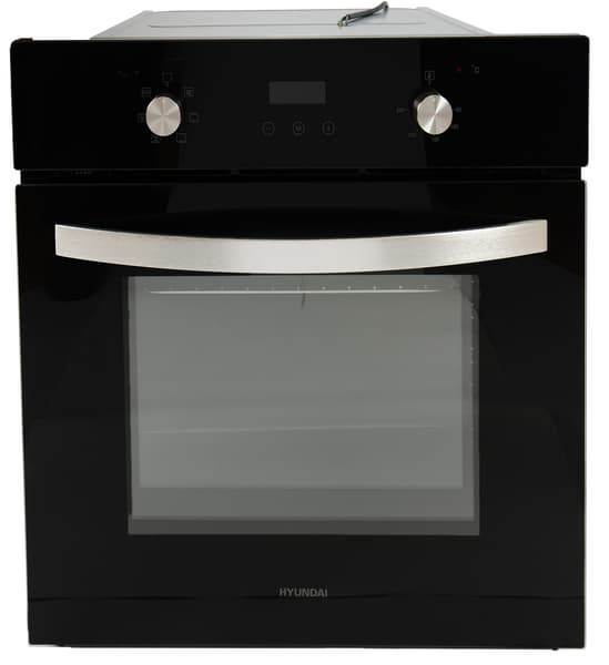 Дизайн Hyundai HEO 6640 BG минималистичный: на черном корпусе задумчивым смайликом серебрятся ручка дверцы и поворотные регуляторы. Иконки на сенсорной панели приглушенного цвета и не нарушают элегантный образ духовки. Стекло дверцы слегка затемнено, но через нее отлично видно внутренности печи.