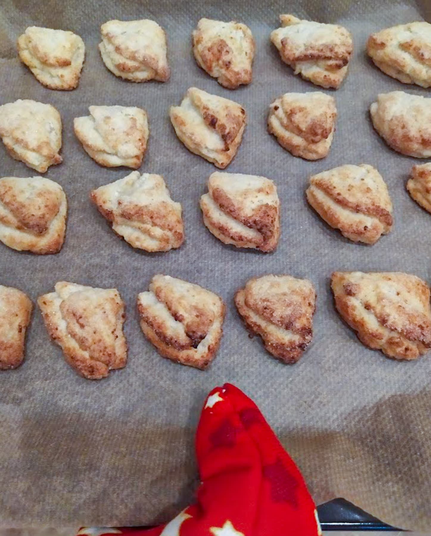 Не самая удачная наша работа с точки зрения эстетики, но как же вкусно: снаружи карамелизовавшийся сахар, внутри — воздушное, идеально пропеченное тесто. Очень опасное печенье: сколько испечешь, столько и съешь, оторваться невозможно.