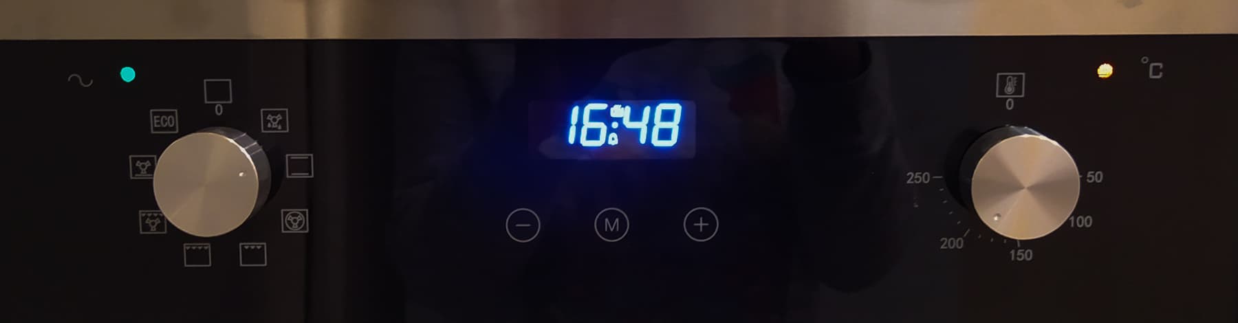 С помощью двух последних таймеров можно «забронировать» время приготовления, другими словами, задать время отложенного старта. Для этого, нажав три раза на «М», сначала нужно задать время приготовления, после этого нажать на «М» еще раз — начнет мигать иконка Auto. С помощью кнопок «+» и «−» теперь необходимо задать время окончания приготовления. Таким образом, если в 10 утра вы установите время приготовления полчаса, а окончание — в 11:30, духовка включится в 11 часов.