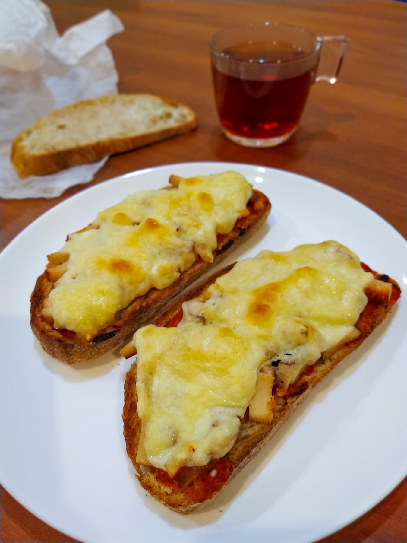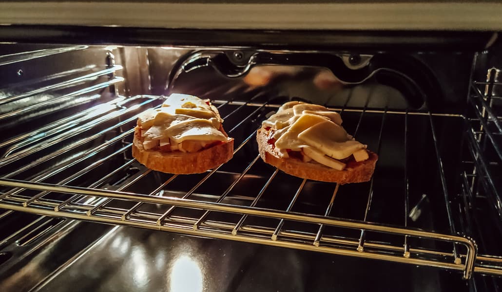 Через 8 минут мы поняли, что бутерброды готовы — по ставшей золотистой сырной шапке.