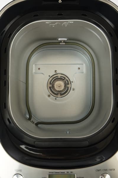 На дне корпуса расположено гнездо для фиксации формы и ответный механизм вращения лопатки для перемешивания теста. По середине высоты стенки вокруг устанавливаемой формы находится тэн.