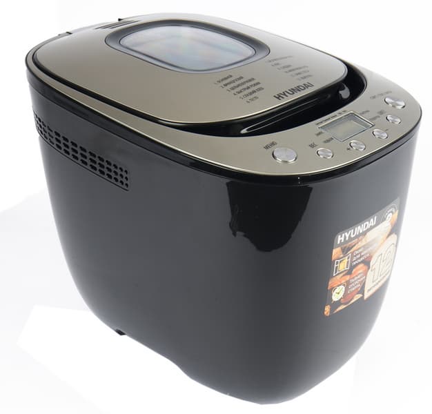 К Hyundai HYBM-P0212 прилагается руководство для пользователей на 17 страницах формата А5, состоящее из разделов: меры безопасности, описание прибора, управление, программы и функции, подготовка и порядок работы, транспортировка и хранение, рецепты и рекомендации, ошибки, отображаемые на дисплее, технические характеристики. Серьезных претензий к инструкции нет, все написано достаточно понятным языком и дает некоторое представление о приборе, но жалко, что нет описания программ — времени замеса и времени выпекания, нет ни одного упоминания о температуре выпекания, нет описания возможных корректировок времени программы и время какой манипуляции мы увеличиваем, увеличивая общее время программы. Рецепты для программ даны в единственном базовом варианте и, как показала практика, требуют корректировок. То есть, для нормальной работы с прибором и получения хлеба хорошего качества требуется самим изучать настройки Hyundai HYBM-P0212 методом проб и ошибок.