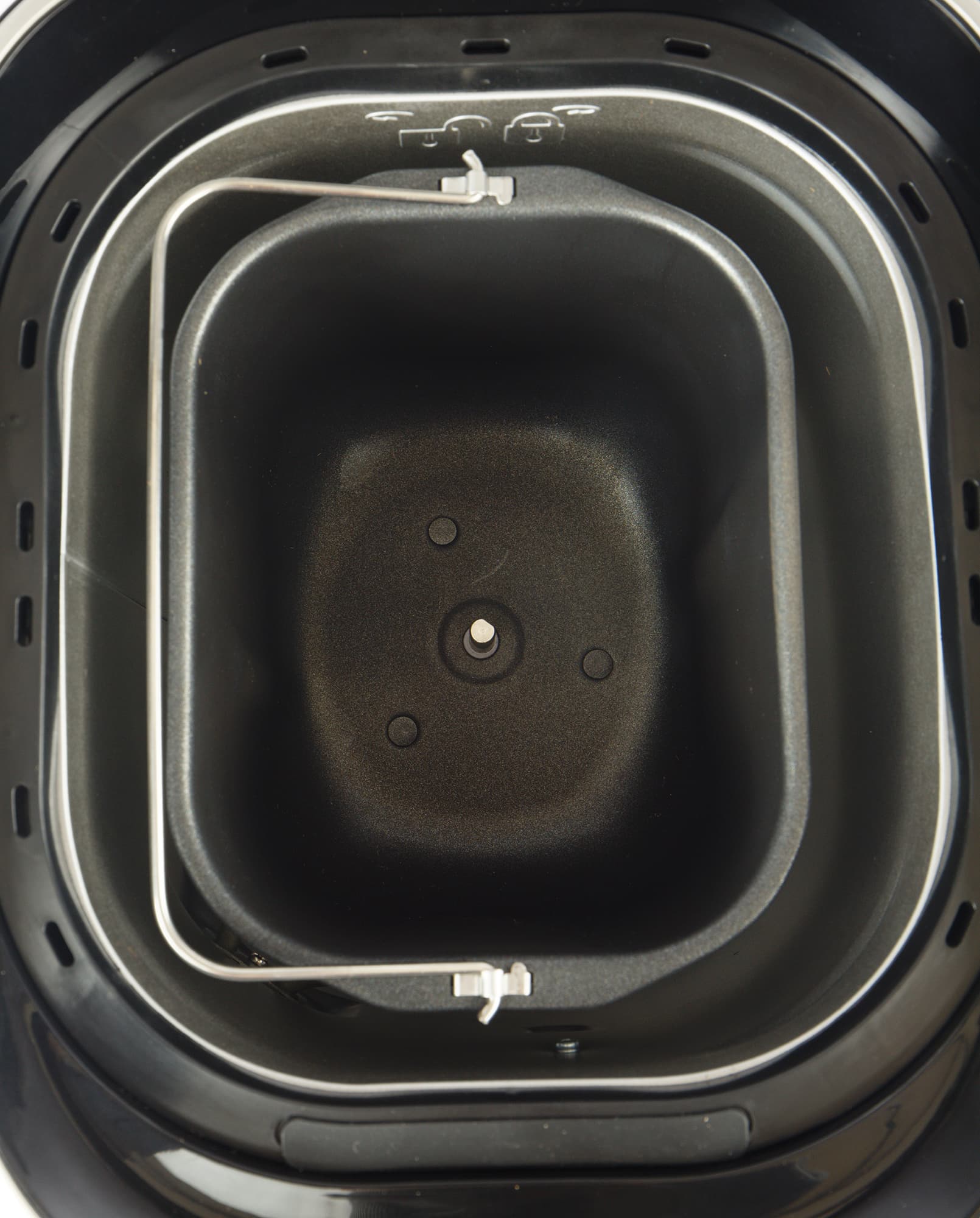 В целом прибор нам понравился. Во-первых, нужно отметить, что ни одно изделие у нас не подгорело, все пропеклось равномерно. Во-вторых, емкость очень удобно ставить и вынимать, не нужно подбирать положение лопаток для установки, как в некоторых других моделях хлебопечек.