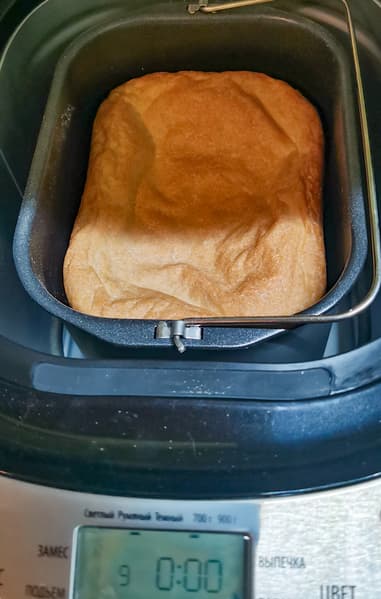 После окончания выпекания и звукового сигнала достали форму из хлебопечки.
