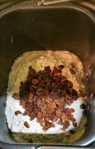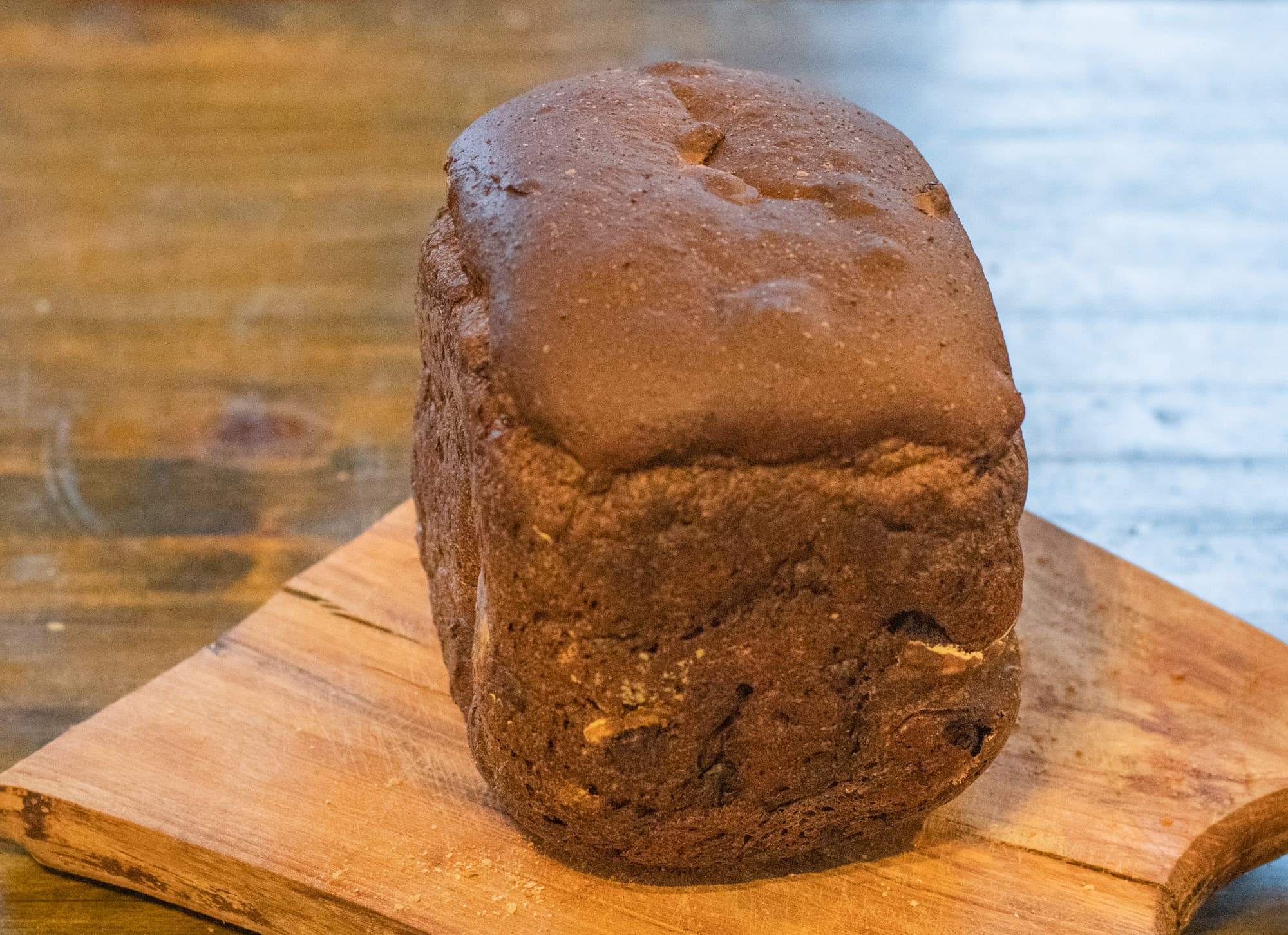 Прибор легко вымесил крутое тесто с большим количеством неразмоченного изюма, небольшое вкрапление муки в корочку со стенок у нас получилось только один раз.