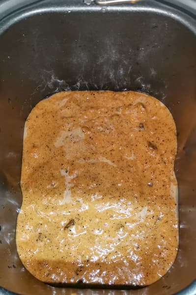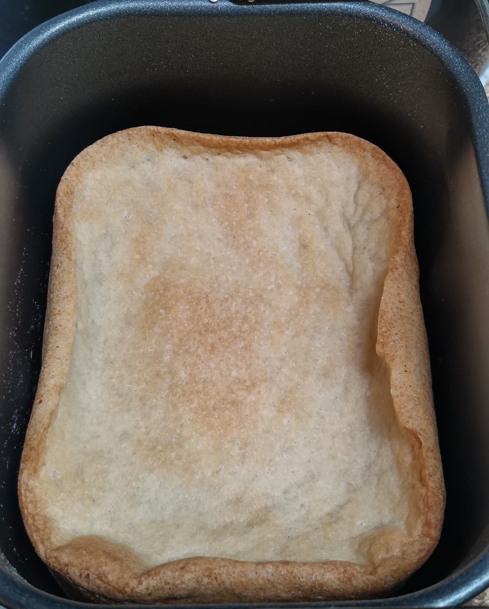 Мы решили посмотреть, будет ли повторяться проблема с корочкой на программе «сэндвич». Действуя строго по рецепту на буханку 700 г, мы заполнили форму для выпечки и запустили программу 9.
