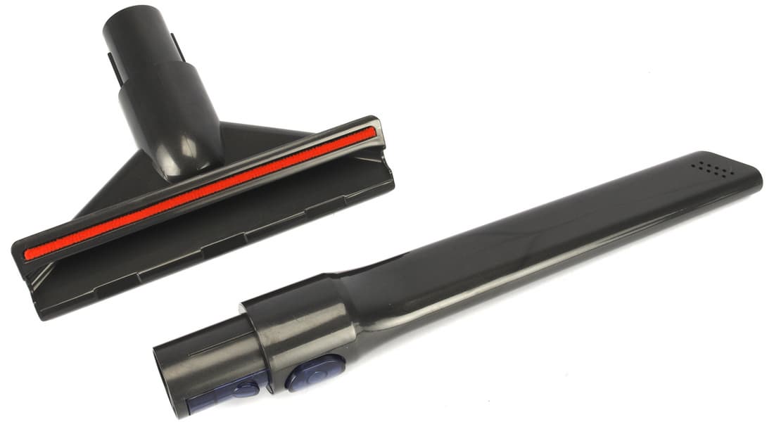 В комплект пылесоса входят две немоторизованные насадки простейшей конструкции: щелевое сопло и широкая насадка для мягкой мебели.