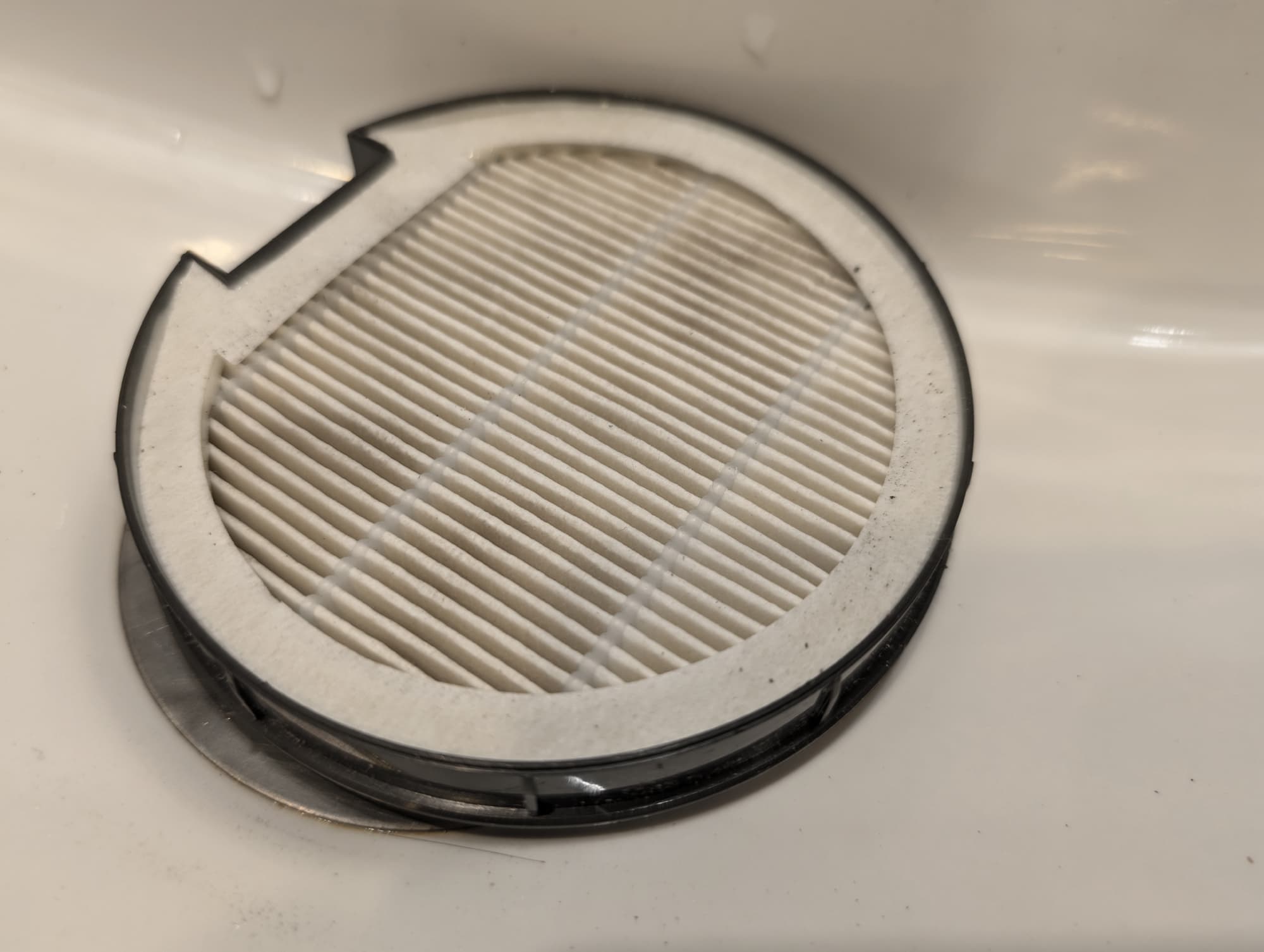 Эффективностью фильтра тонкой очистки мы полностью удовлетворены: наружная сторона гармошки HEPA-элемента остается светлой даже после нескольких уборок.