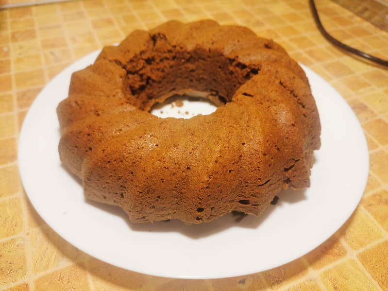 Он получился очень нежным, но на наш взгляд стоило подержать его в духовке еще пару минут, так как ближе к центру у него находилось чуть более темное тесто — не сырое, но хотелось бы, чтобы оно было еще суше. Данную ситуацию не смеем вменять духовке, так как по рецепту на упаковке кекс следовало держать внутри печи 40-50 минут.