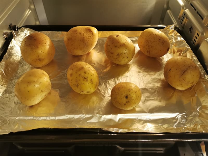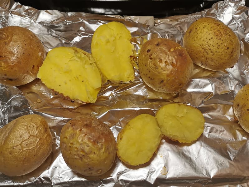 Спустя 50 минут мы достали наши картофелины и увидели, что конвекция отлично справилась со своей задачей, так как мы выложили корнеплоды разных размеров, но тем не менее они все отлично пропеклись.
