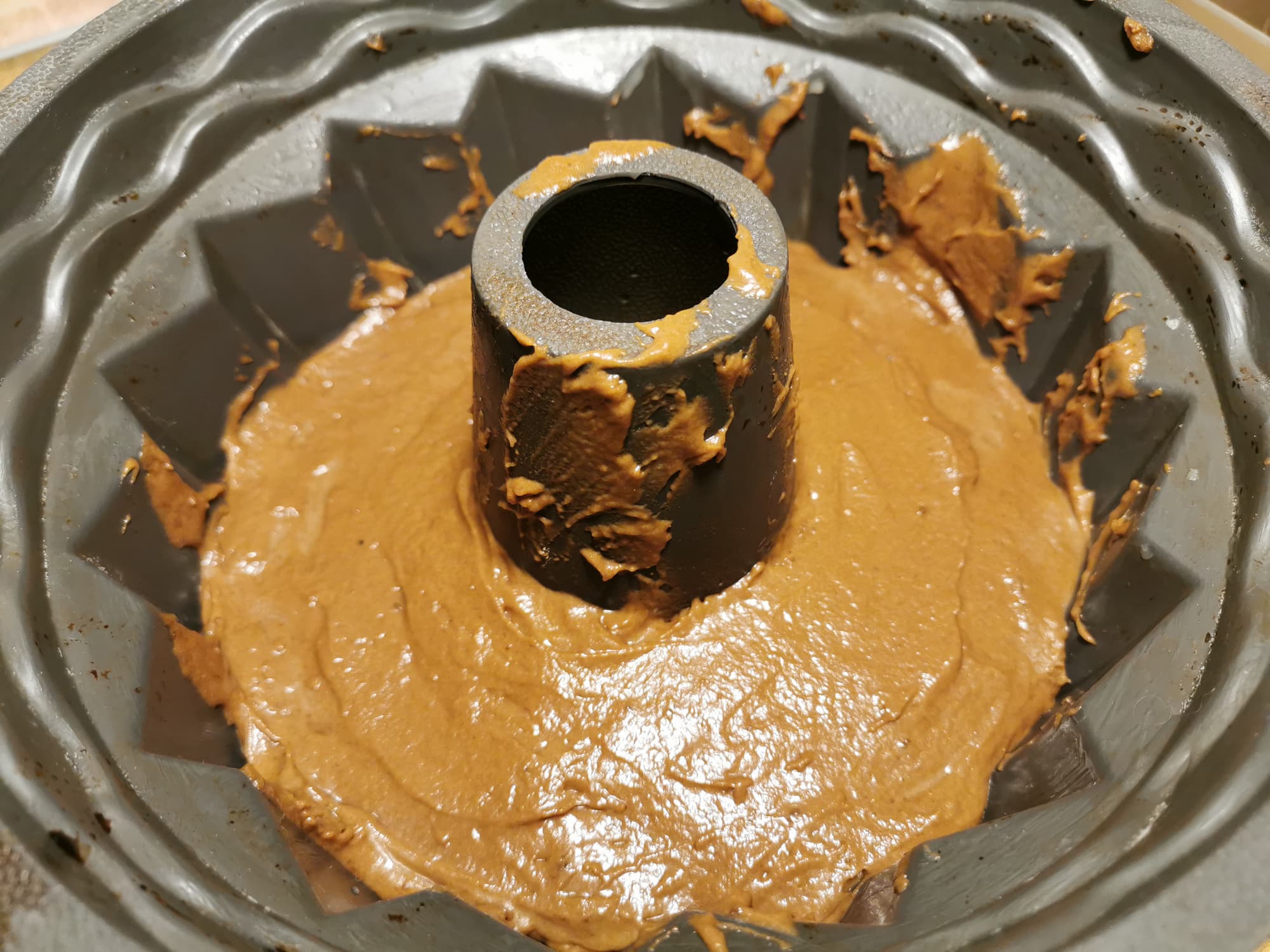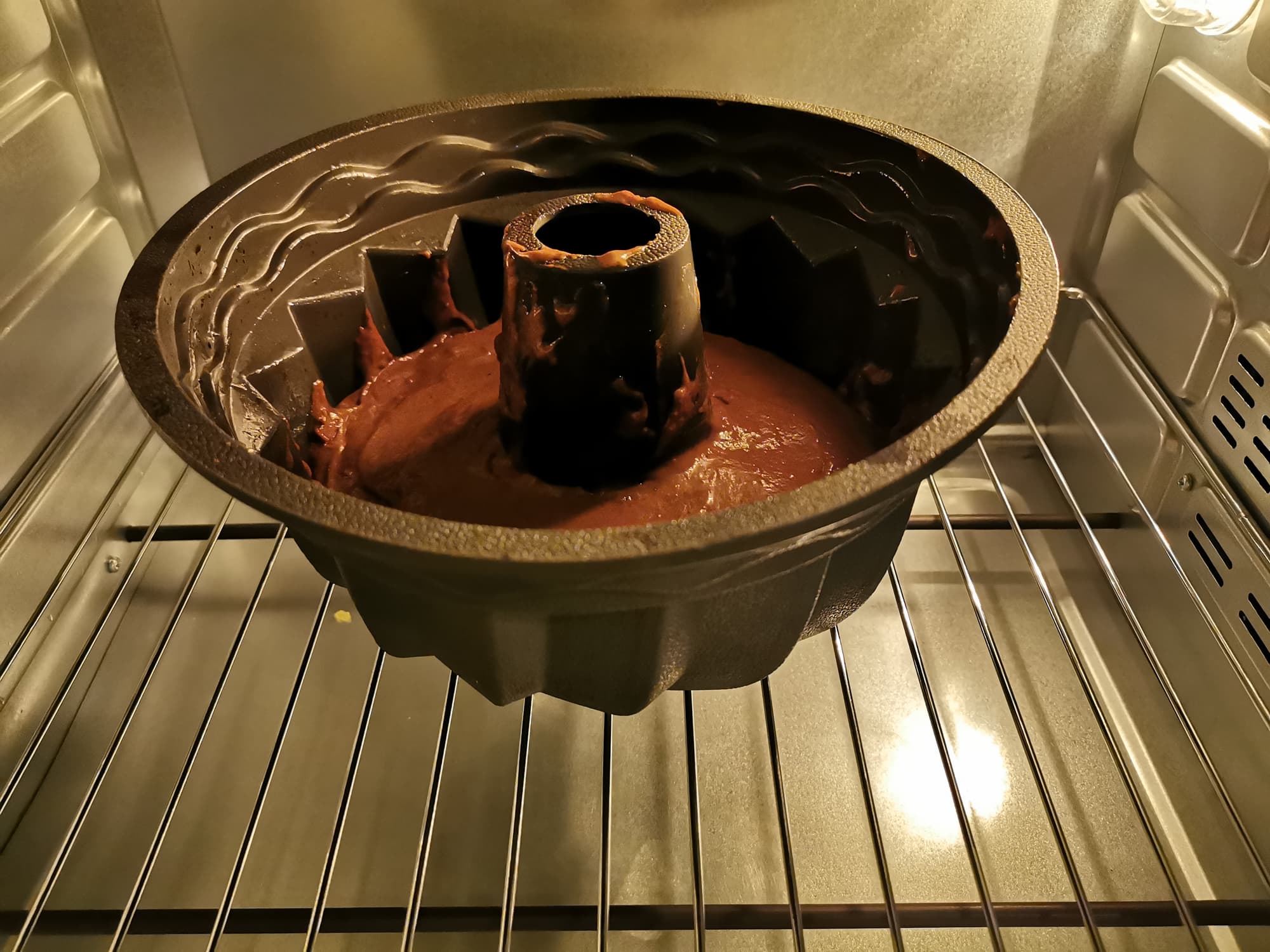 Тесто мы перелили в силиконовую форму и поместили ее в уже разогретую до 180 °C печь.
