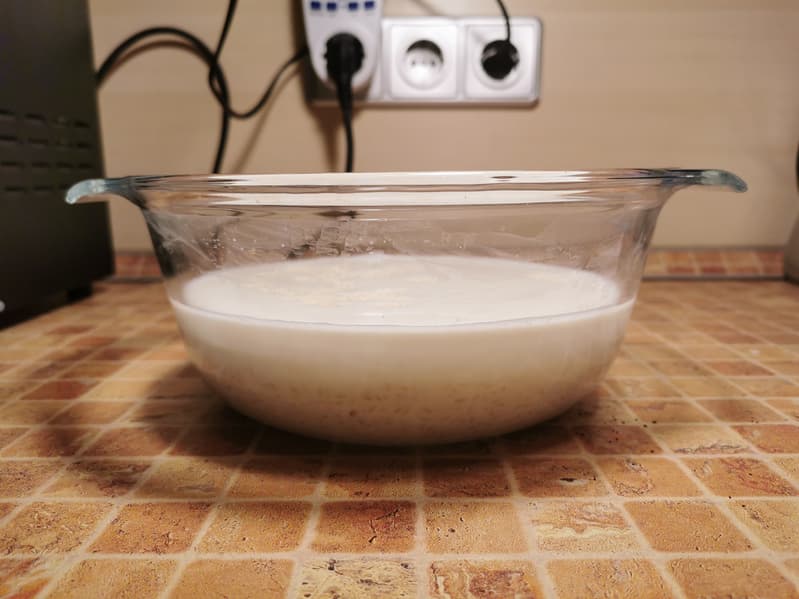 После чего добавили в два раза больше молока и насыпали сверху щепотку соли.