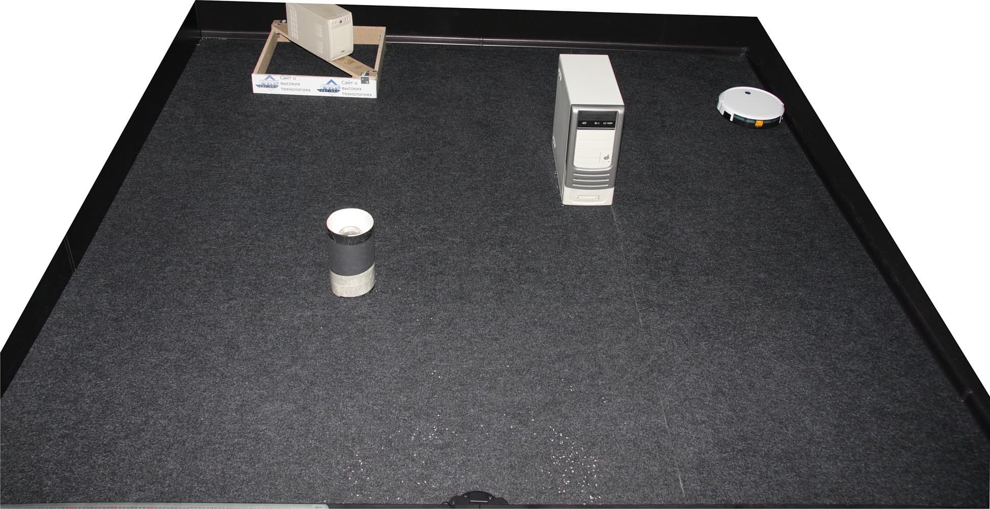 Уборка в тестовом помещении до разряда аккумулятора показала, что робот способен убрать почти весь мусор на доступной ему территории, совсем немного риса осталось в углах, в тесном загончике и чуть больше около базы: