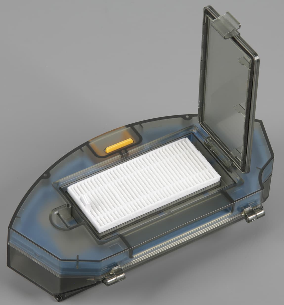 Ниже представлены результаты тестирования по нашей методике, подробно описанной в отдельной статье. Мы уже тестировали роботы-пылесосы с похожей системой сбора мусора и аналогичным набором фильтров, поэтому нам известно, что складчатый фильтр существенно уменьшает поток воздуха и сильно снижает эффективность уборки нашего тестового мусора в виде риса. В итоге складчатый фильтр мы не устанавливали, благо конструкция пылесборника это позволяет сделать без нарушения герметичности. На самом деле первичного сетчатого фильтра вполне достаточно для отделения даже очень мелких частиц, поэтому устанавливать складчатый фильтр нужно только в том случае, если убираемый мусор в основном очень легкий и необходима самая тщательная фильтрация воздуха.