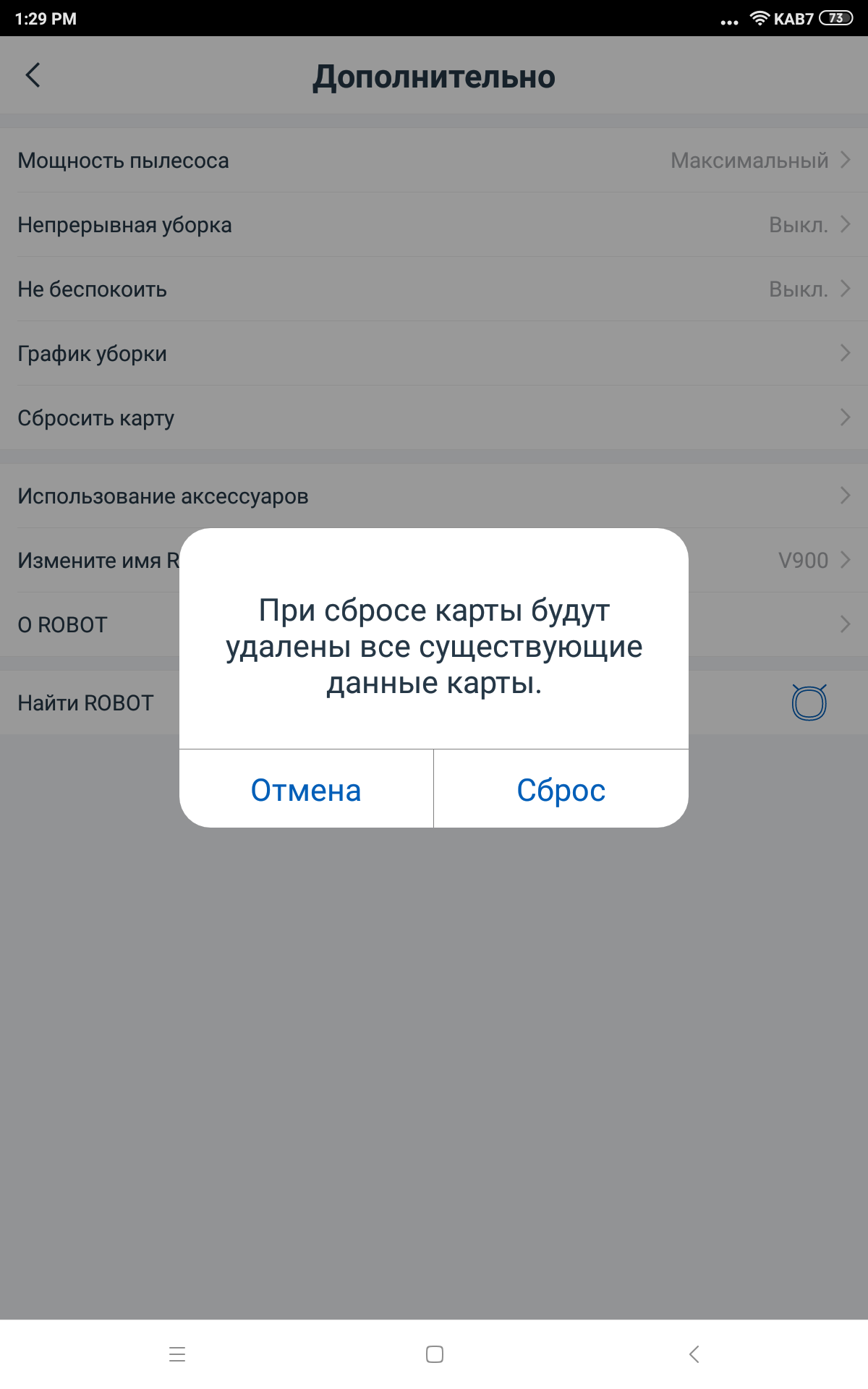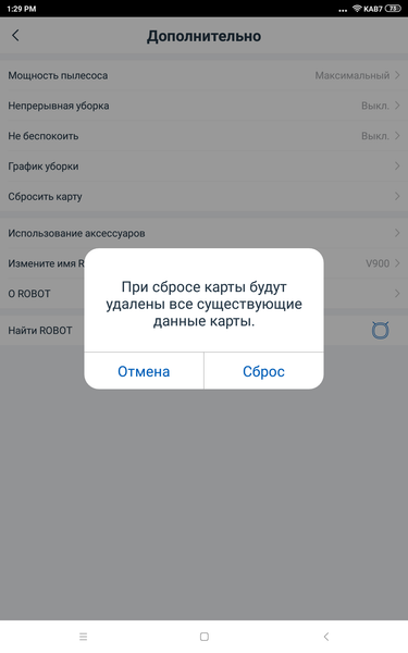 И еще функции приложения: редактирование имени робота, обновление ПО робота, просмотр сведений о сети, удаление робота из приложения и удаление всех карт.