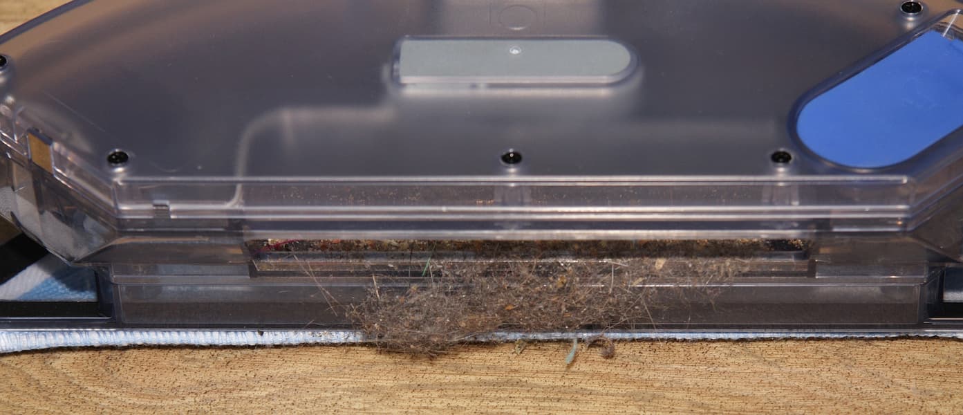 Немного мусора робот набросал в сухой отсек блока для влажной уборки: