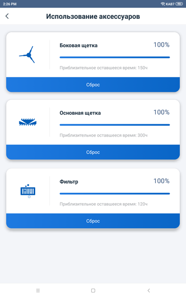 Дополнительно о своем состоянии робот информирует с помощью голосового оповещения, проговаривая фразы на русском языке, и в редких случаях робот издает тональные звуковые сигналы. В мобильном приложении звуки и подсветку индикаторов можно отключить на выбранный интервал времени суток.