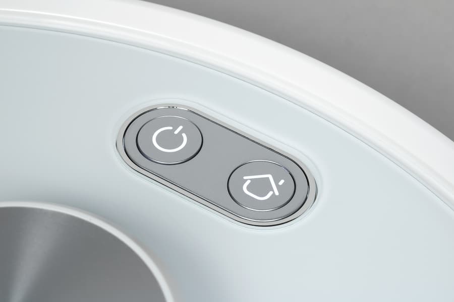 На верхней панели устройства, рядом с башенкой лидара, есть две кнопки: одна из них включает робота и запускает режим автоматической уборки, вторая предназначена для возврата на базу.