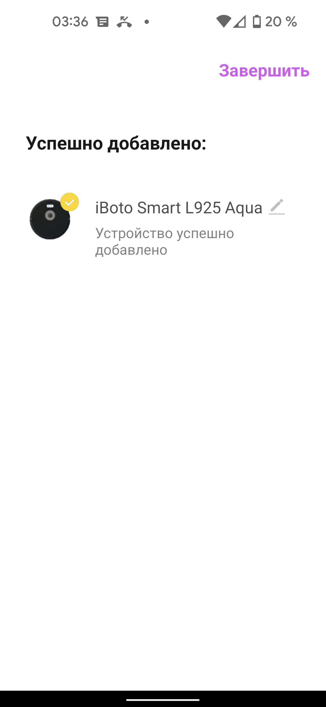 Воспользовавшись кнопкой «добавить устройство», мы без труда нашли iBoto Smart L925 Aqua в списке поддерживаемых роботов-пылесосов и перешли к процедуре синхронизации.