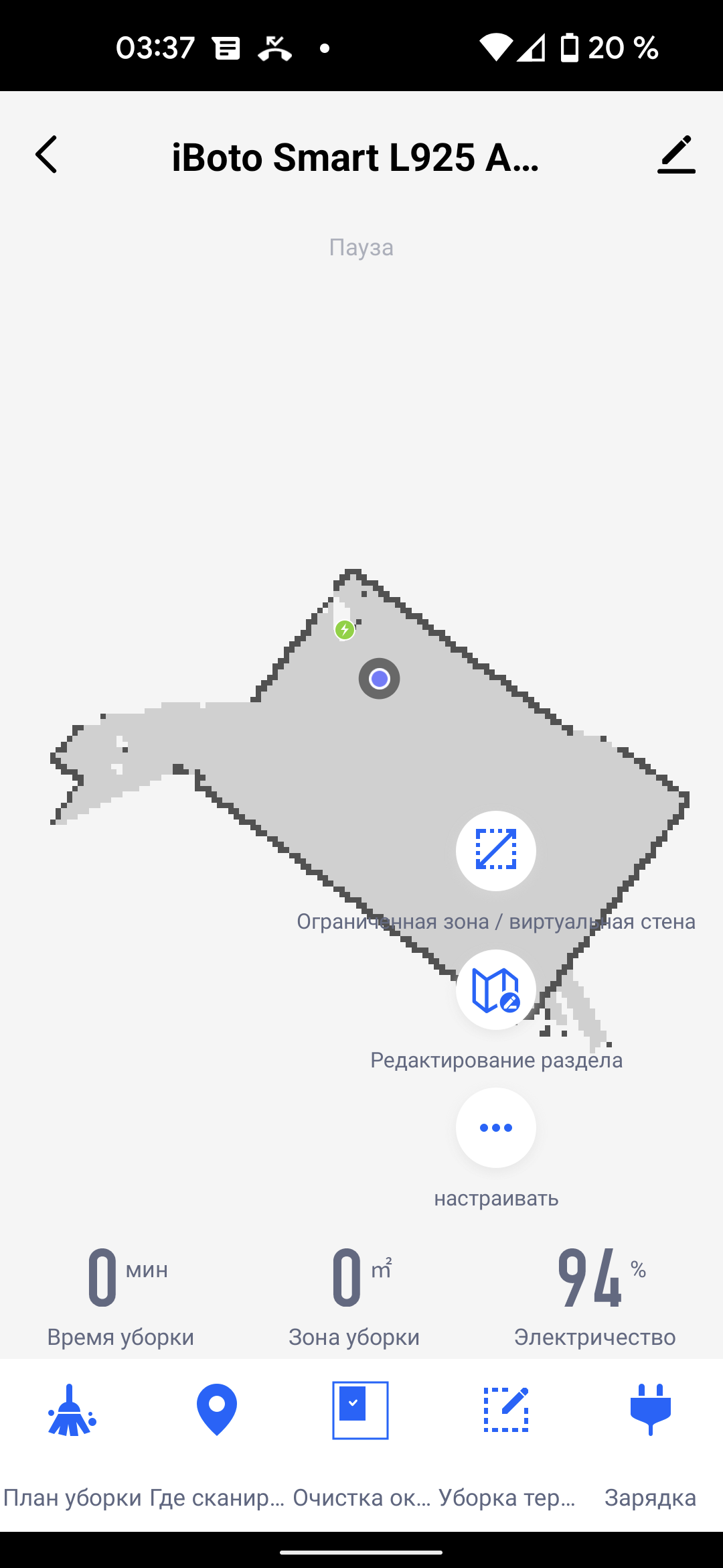| Дополнительные функции | виртуальные границы, возобновление уборки с места остановки после зарядки |