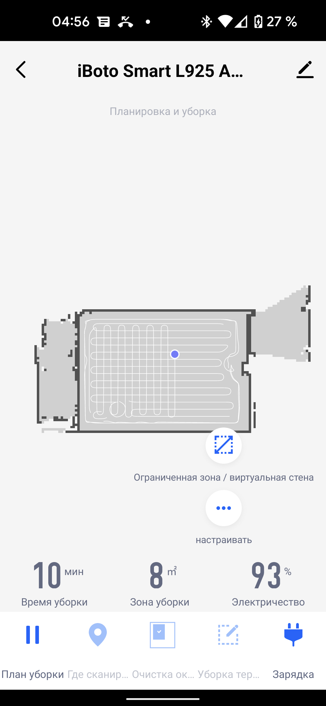 Помимо прямоугольников запретных зон приложение предоставляет также инструмент «виртуальная стена»: хозяин может провести на карте линию, которую роботу нельзя пересекать.