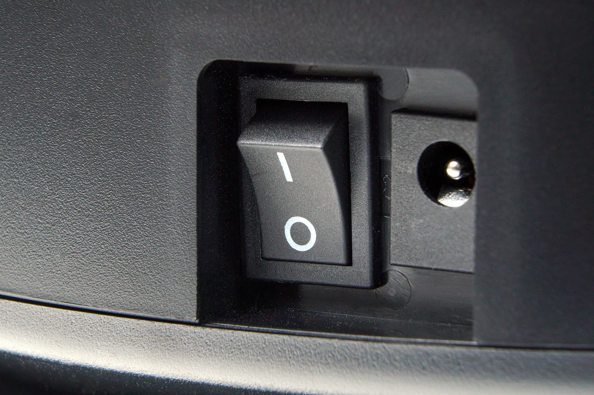 Устройство бампера обыкновенное: переднее подпружиненное полукольцо закрыто ИК-прозрачным пластиком, за которым скрываются датчики приближения. Чуть ниже размещается полоса из резины, смягчающая неизбежные удары о мебель. Инфракрасные датчики есть и на корме пылесоса, это должно облегчать поиск базы. На правой боковой стороне находится выключатель, а рядом с ним — штекер зарядного устройства. При необходимости пылесос можно заряжать непосредственно от адаптера постоянного тока. Это может быть удобно в небольших помещениях, где нет возможности выделить на полу специальный участок, чтобы поставить базу.