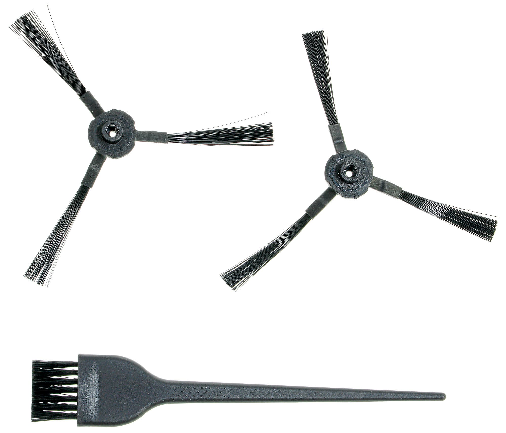 После извлечения пылесоса из коробки следует, разумеется, удалить с него наклейки и транспортировочные прокладки, защищающие бампер. Боковые щетки нужно установить, соблюдая направление изгиба ворса: щетку с маркировкой «L» на левую ось, а щетку «R» — на правую.