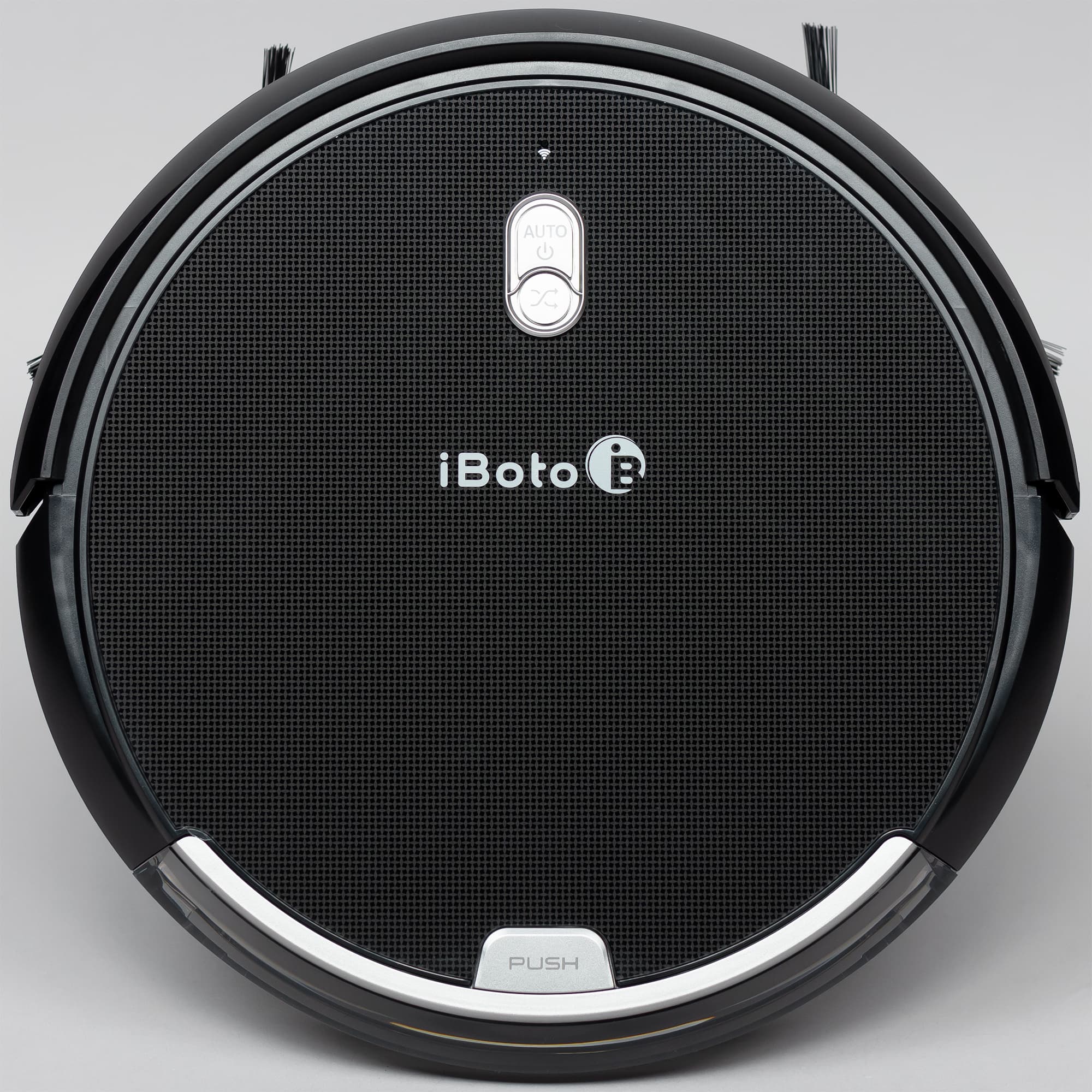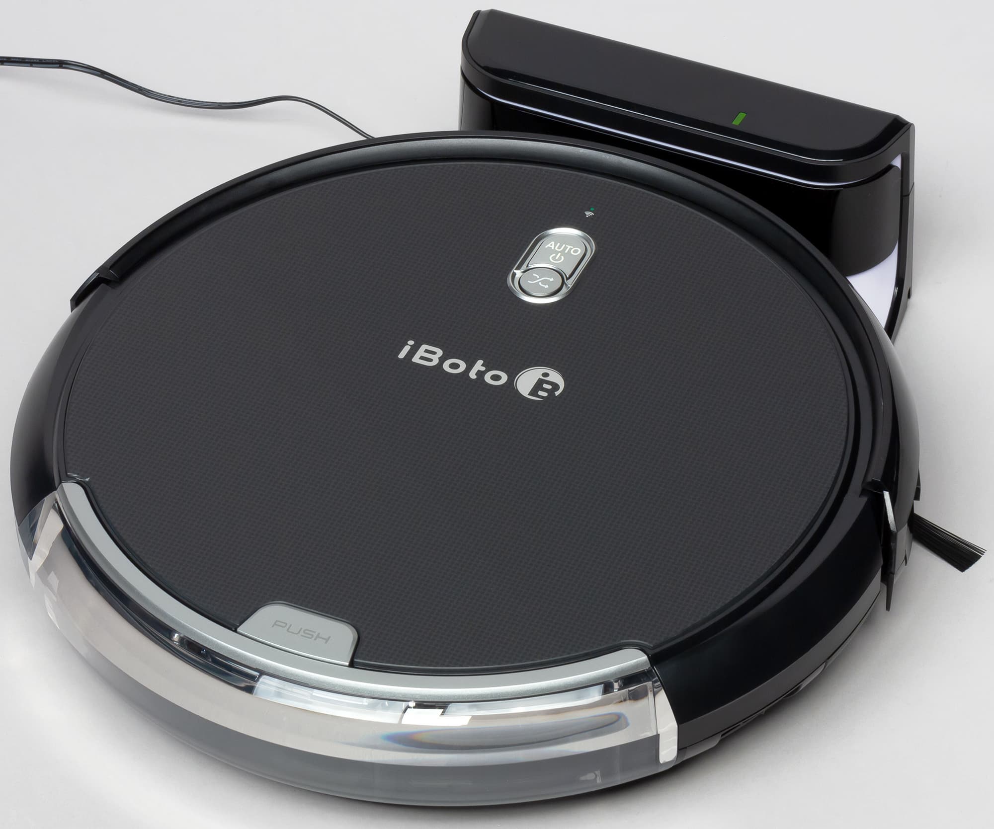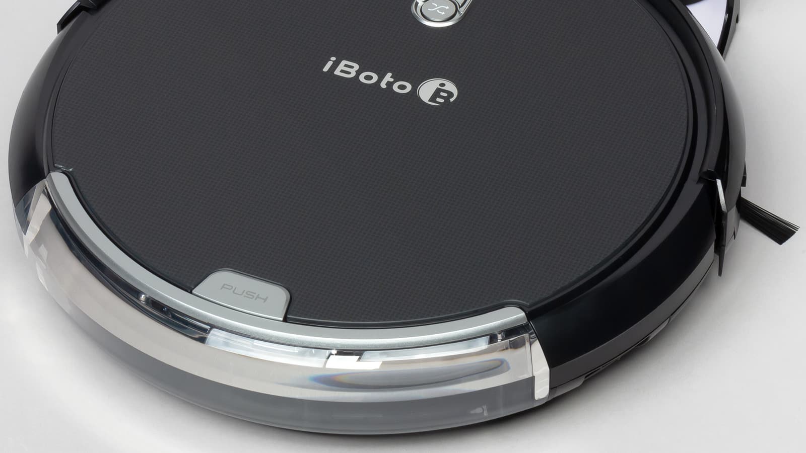 Корпус робота изготовлен в основном из черного пластика без покрытия и с матовой поверхностью. Бампер — из черного пластика без покрытия и с гладкой поверхностью. Преимущественно темный цвет корпуса осложняет поиск робота в темных закоулках квартиры, когда он по какой-то причине не вернется на базу, также робота сложнее заметить боковым зрением, когда он путается под ногами, а значит, с большей вероятностью на него можно наступить. Верхняя панель прикрыта пластиной из минерального закаленного стекла, поэтому она не царапается и легко очищается, однако из-за темной подложки панель маркая, она быстро покрывается следами от пальцев. Впрочем, узор под стеклом снижает заметность отпечатков. На верхней панели ближе к передней части есть две механические кнопки: одна с подсвечивающимися словом Auto и значком питания, вторая — с подсвечивающимися значком из двух перекрещенных стрелок.