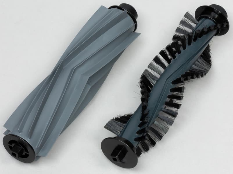 Альтернативная основная щетка представляет собой цилиндр из резины с лопастями-скребками. Главное преимущество такой безворсовой щетки перед традиционной со щетиной заключается в том, что на эту резиновую не так быстро наматываются волосы, шерсть, волокна и т. д., а все намотавшееся легко снимается при очистке.