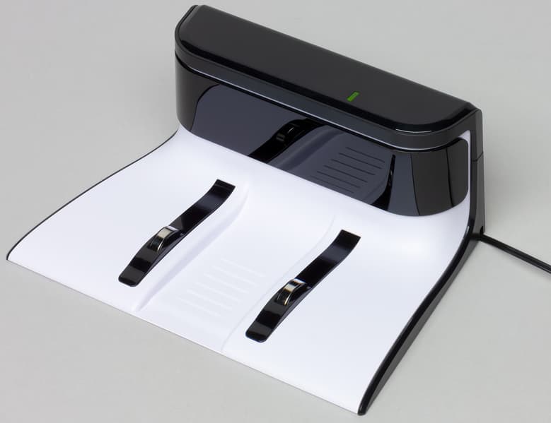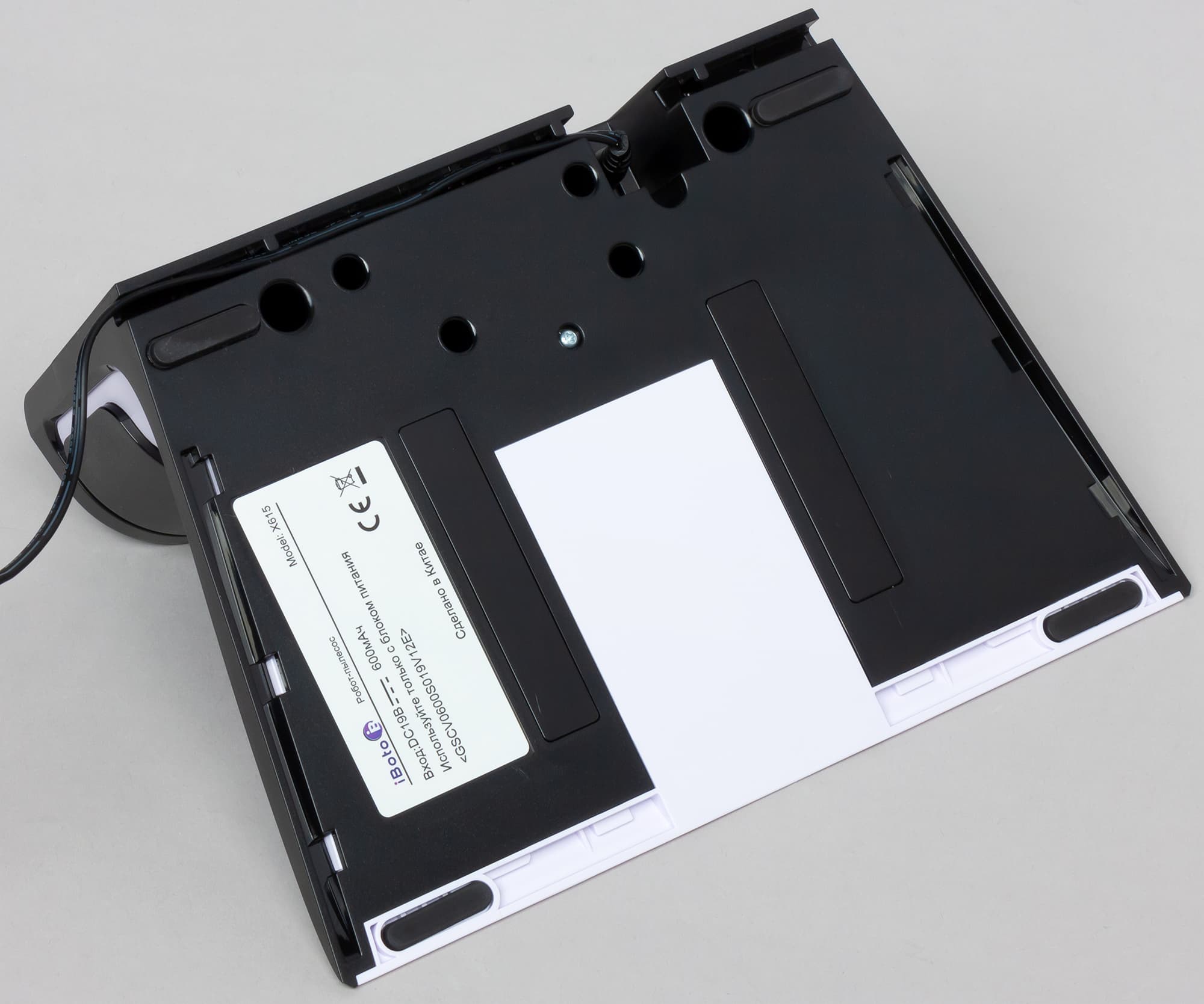 Питается база от внешнего адаптера питания, который также можно использовать для зарядки робота, минуя базу, если по какой-то причине она недоступна. Кабель можно уложить в каналы на днище базы и вывести на правую или на левую сторону. Длина кабеля от адаптера равна 1,5 м.
