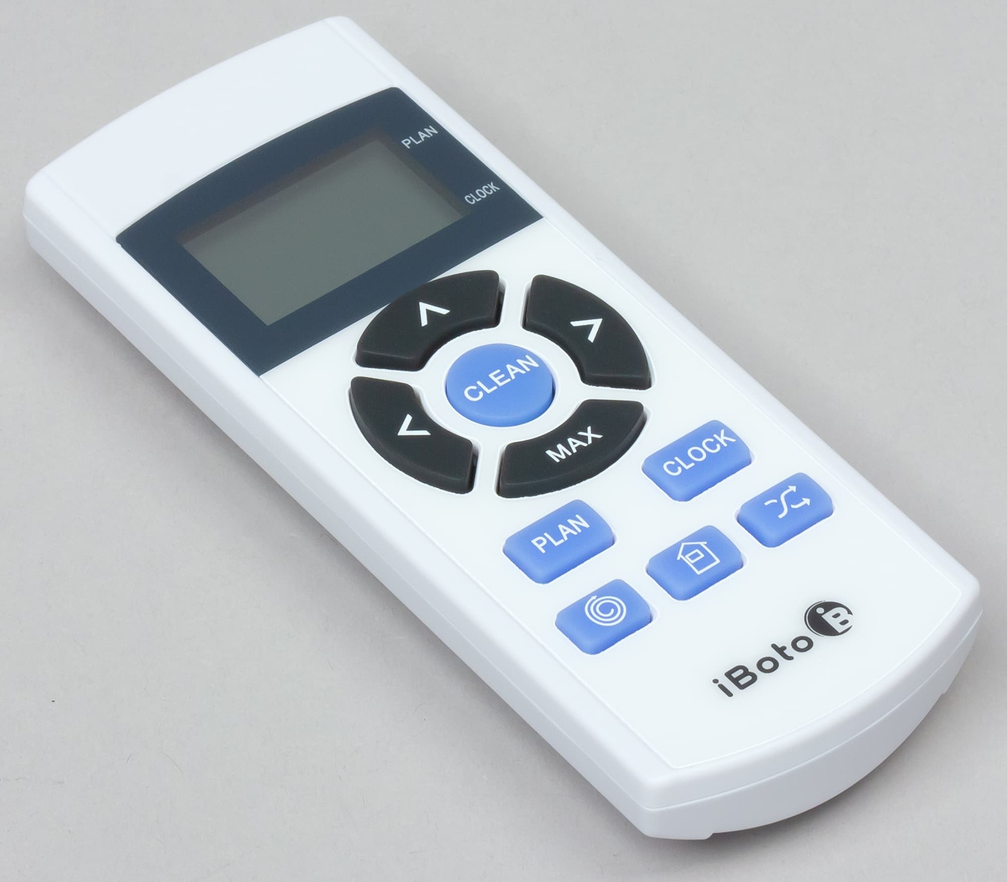 Кнопки пульта изготовлены из упругого резиноподобного материала, обозначения на кнопках достаточно крупные и контрастные. Экранчик в передней части пульта показывает текущее время и время, на которое запланирован автоматический запуск уборки.