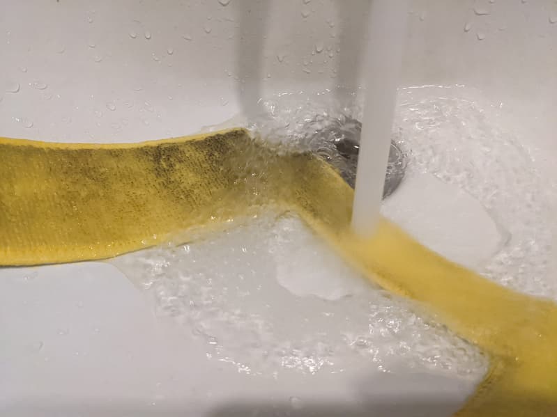 Для приведения в порядок чистящего полотна достаточно прополоскать его под струей воды, добавив при необходимости небольшое количество моющего средства.