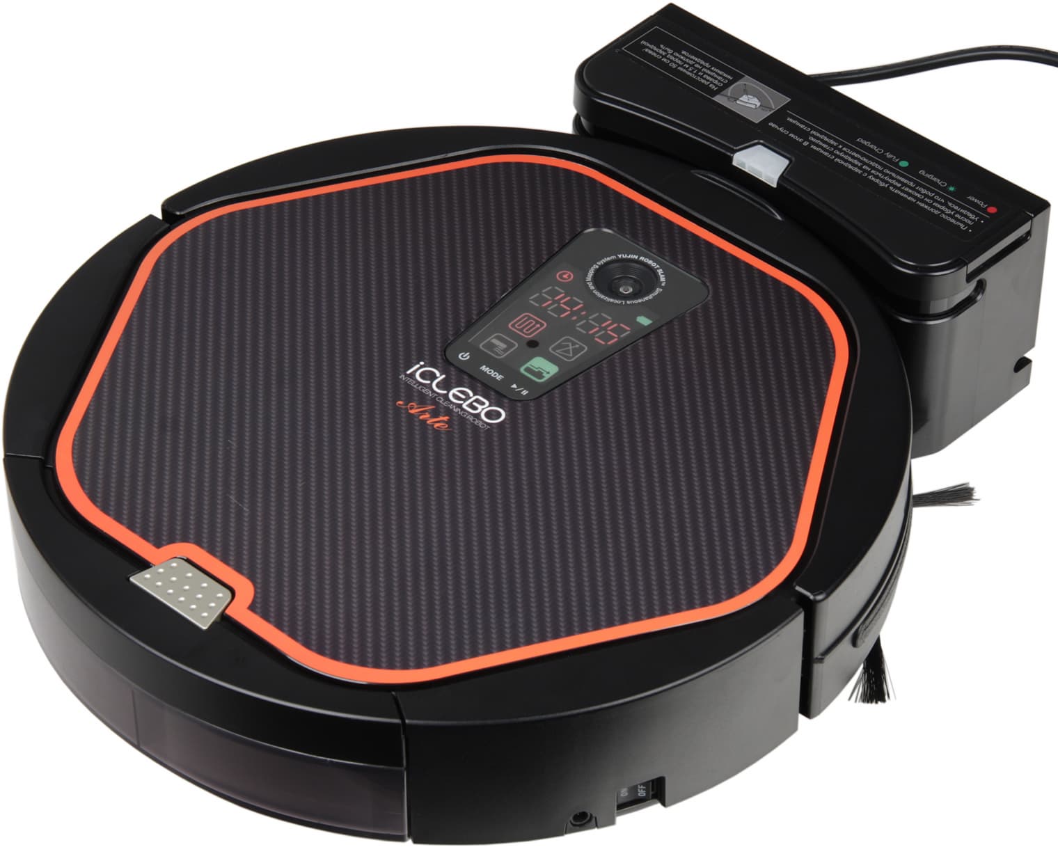 Робот-пылесос iClebo Arte отличается высоким качеством изготовления и рядом рациональных конструктивных решений, пусть и не всегда оригинальных. К таким можно отнести две боковые щеточки правильной конструкции — не просто с ворсом, но и с гибкими поводками, пылесборник с верхней крышкой, простой фильтрующий элемент воздушного фильтра, который при необходимости можно изготовить из подходящего материала, базовую станцию с «секретами» и т. д. При этом робот выполняет уборку быстро и достаточно тщательно, разве что излишне опасаясь вхождения в физический контакт с препятствиями, которые определяет дистанционными датчиками. В итоге он не всегда заезжает в тесные места и может оставлять немного мусора вдоль стен.