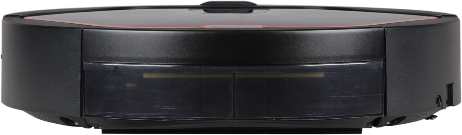 Переход прямым углом от верхней панели к боковой поверхности снижает вероятность того, что пылесос будет застревать под препятствиями с небольшим просветом. Сверху корпус прикрыт панелью из прозрачного пластика, рисунок под которой имитирует переплетение кевларового волокна. На верхней панели ближе к передней части корпуса находится контрольная панель с тремя емкостными сенсорными кнопками, светодиодным сегментным дисплеем и иконками режимом/состояния подсвечиваемыми светодиодами.