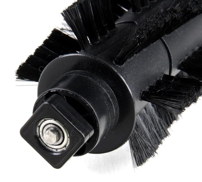 При уборке две передние щеточки подгребают мусор к центру, затем основная щетка, работая в паре с неподвижным резиновым скребком, перебрасывает его в пылесборник. Тяжелые частицы мусора попадают в пылесборник по инерции, волокна и налипшие на щетку фрагменты мусора снимаются гребенкой на пылесборнике, а легкие частицы, подхваченные основной щеткой, потоком воздуха засасываются в пылесборник, где задерживаются воздушным фильтром. Отметим конструкцию боковых щеток — гибкие упругие поводки заканчиваются относительно жесткой прямой щетиной. В результате щеточки работают весьма эффективно и долго не теряют свою форму. Этот робот не является пылесосом в классическом смысле, так как непосредственно с очищаемой поверхности пыль не засасывается.
