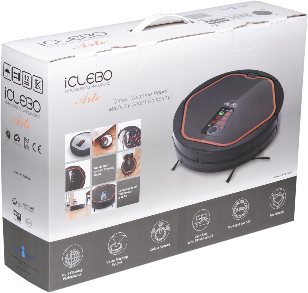 Компания Yujin Robot, которая производит линейку iClebo с 2005 года, разрабатывает и выпускает также множество других роботов — от роботов-игрушек до военных машин. Этот опыт не может не оказать положительное влияние на качество продукции данной компании, а то, что на днище робота указано Made in Korea, является, по мнению производителя, признаком высокой надежности этого высокотехнологичного устройства.