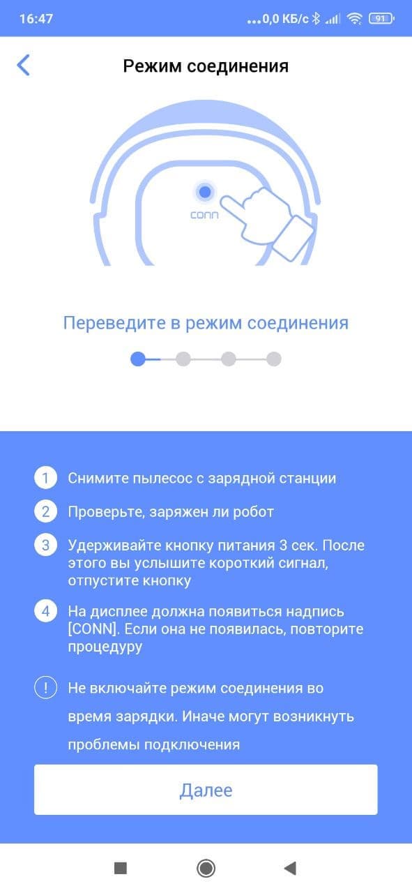Первоначальная настройка подразумевает добавление пылесоса в список домашних устройств.