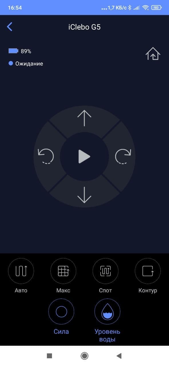 - Авто (основная программа) — стандартный режим: пылесос движется змейкой с построением карты помещения