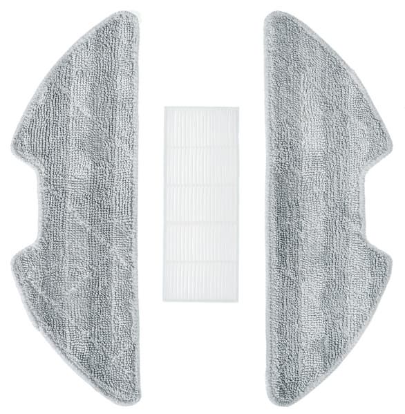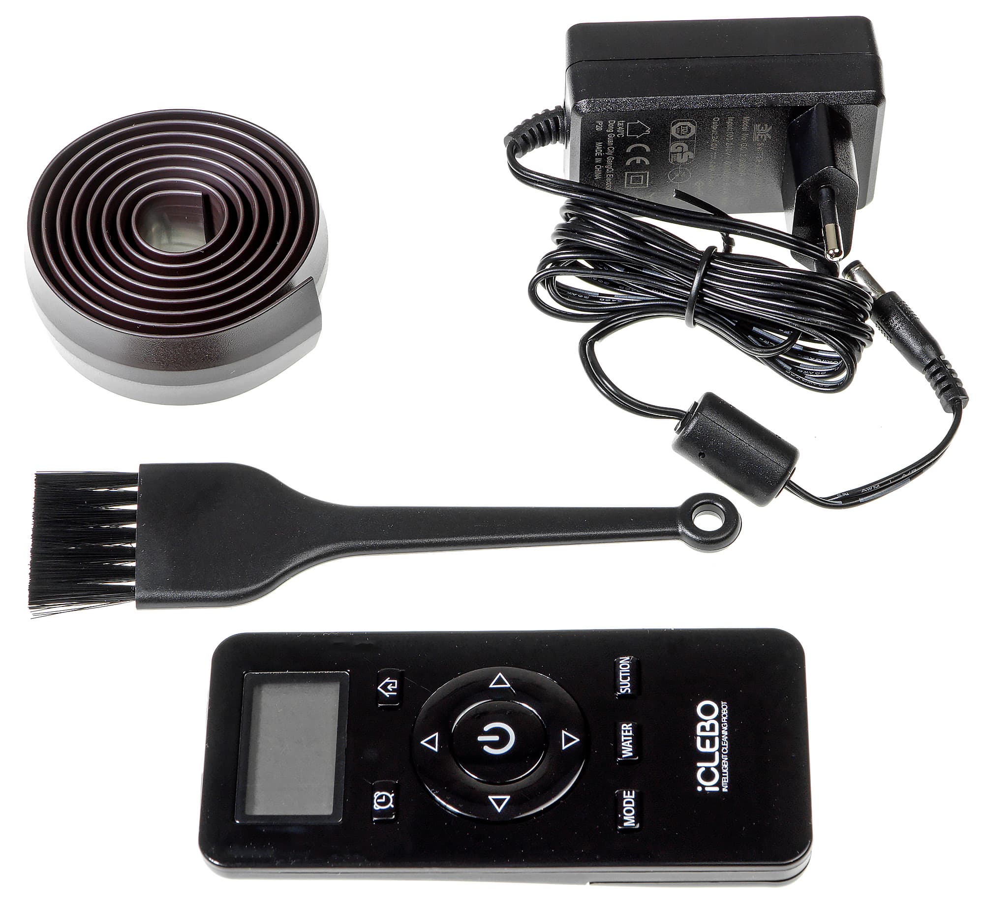 Запасные части и расходные материалы в комплекте поставки, таким образом, оказались представлены сменным фильтром, вторым комплектом боковых щеточек (первый комплект пользователь устанавливает сразу) и сменной тряпкой (насадкой) для влажной уборки.