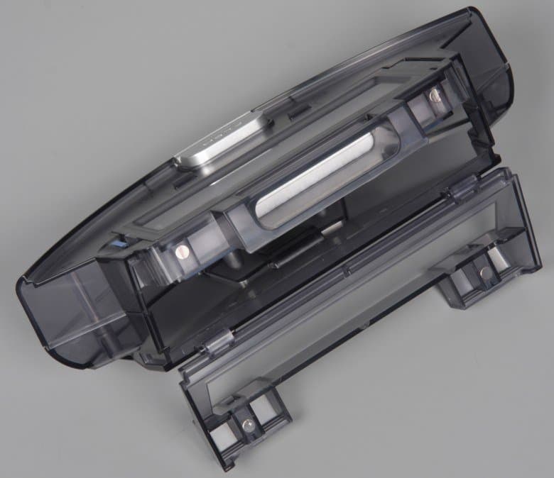 Нажав на фиксатор сзади, можно отсоединить пылесборник от корпуса робота.