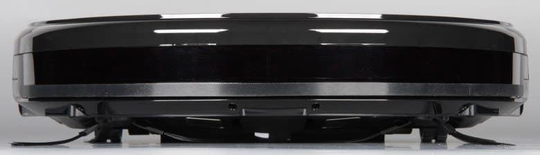 Корпус робота изготовлен в основном из черного пластика без покрытия. Верхняя половина корпуса имеет зеркально-гладкую не устойчивую к повреждениям и маркую поверхность, а нижняя — с более практичной матовой поверхностью. Преимущественно темный цвет корпуса осложняет поиск робота в темных закоулках квартиры, когда он по какой-то причине не вернется на базу, также робота сложнее заметить боковым зрением, когда он путается под ногами, а значит, с большей вероятностью на него можно наступить. Верхняя панель прикрыта пластиной из минерального закаленного стекла, поэтому она не царапается и легко очищается. Ободок сверху по периметру имеет серебристое покрытие. На верхней панели ближе к передней части есть единственная механическая кнопка с подсвечивающимися словом Auto и значком питания.