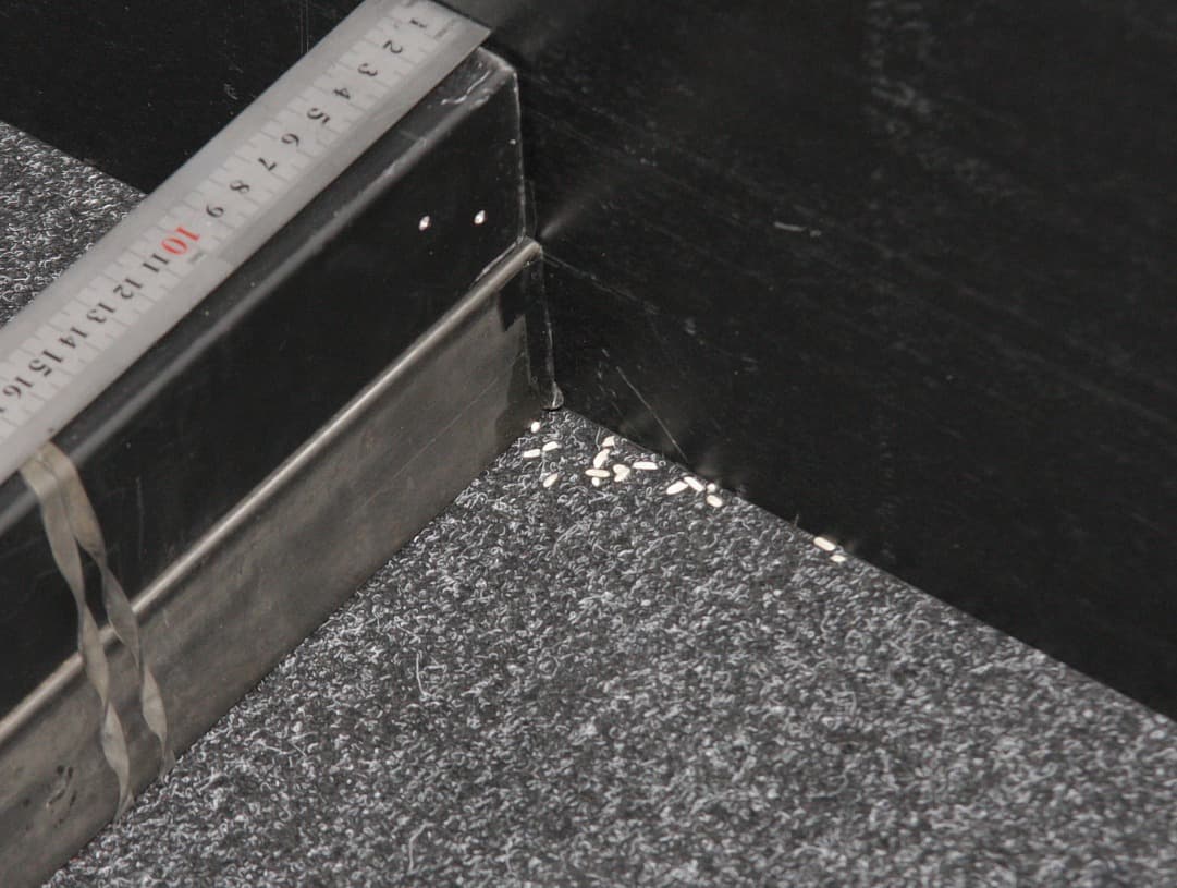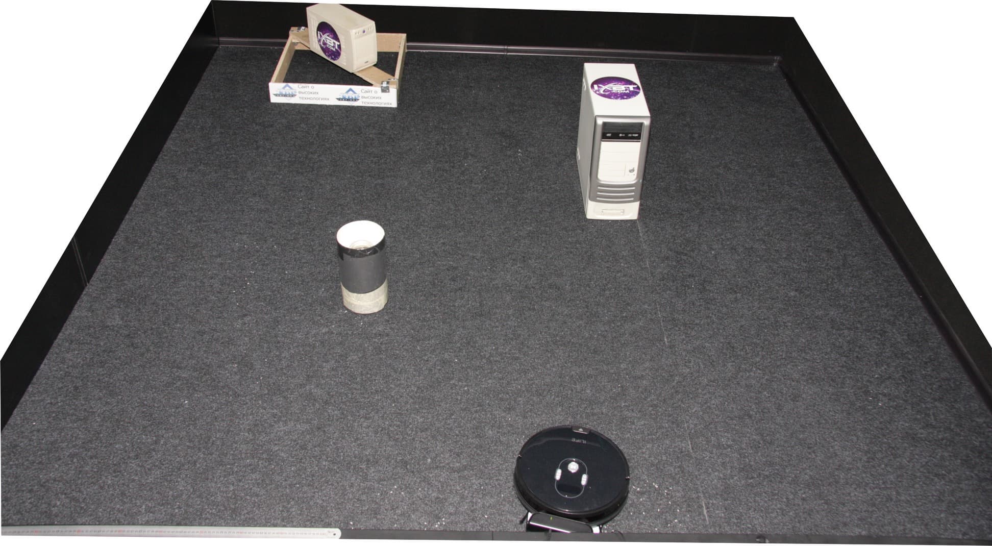 Предыдущие тесты показали, что, как замена щетки на ворсяную, так и увеличение мощности вентилятора не приводят к значимому изменению качества уборки нашего тестового мусора, поэтому все количественные тесты мы проводили с нормальной мощностью и с установленным валиком-скребком. Видео ниже снято с одной точки с почти полным охватом убираемой территории, база находится внизу по центру, при обработке часть видеоряда ускорена в десять раз: