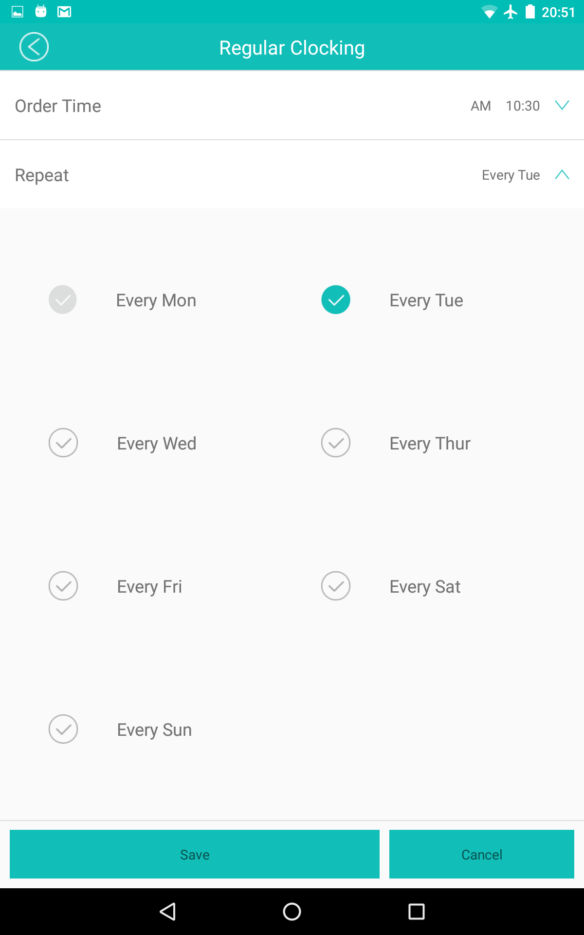 Есть возможность назначить запуск (или не запуск) уборки в автоматическом режиме в выбранные дни недели на определенное время, устанавливаемое свое для каждого дня.