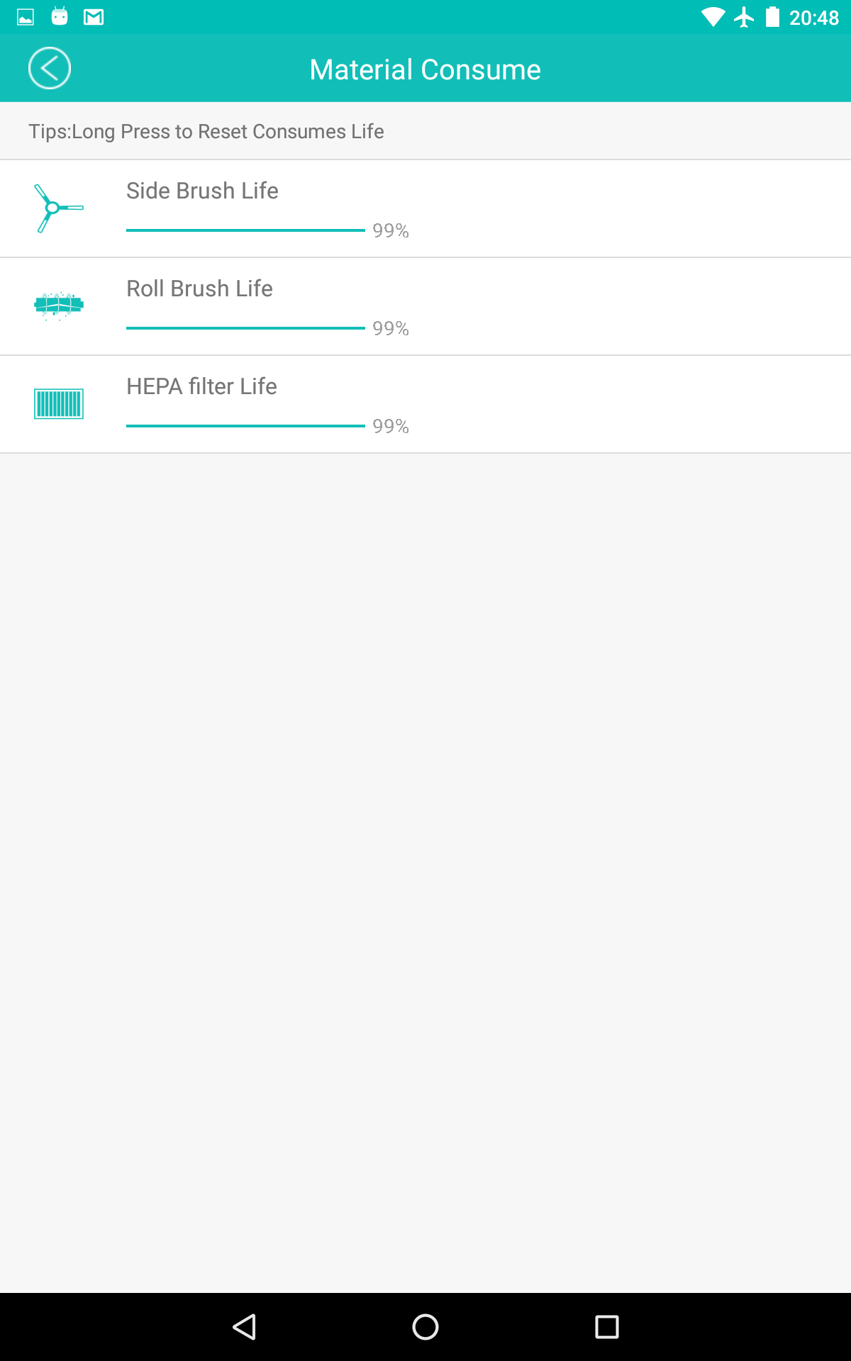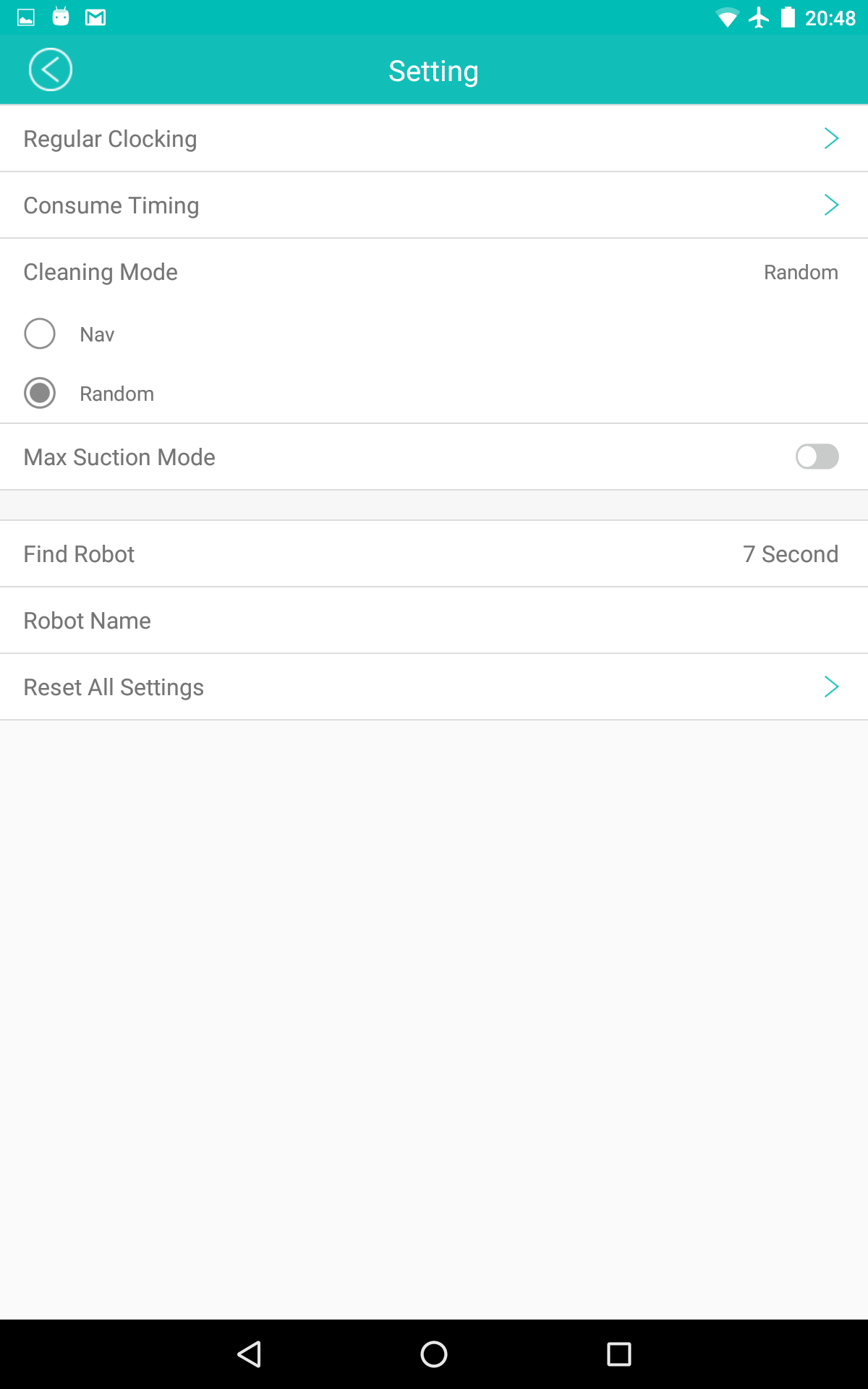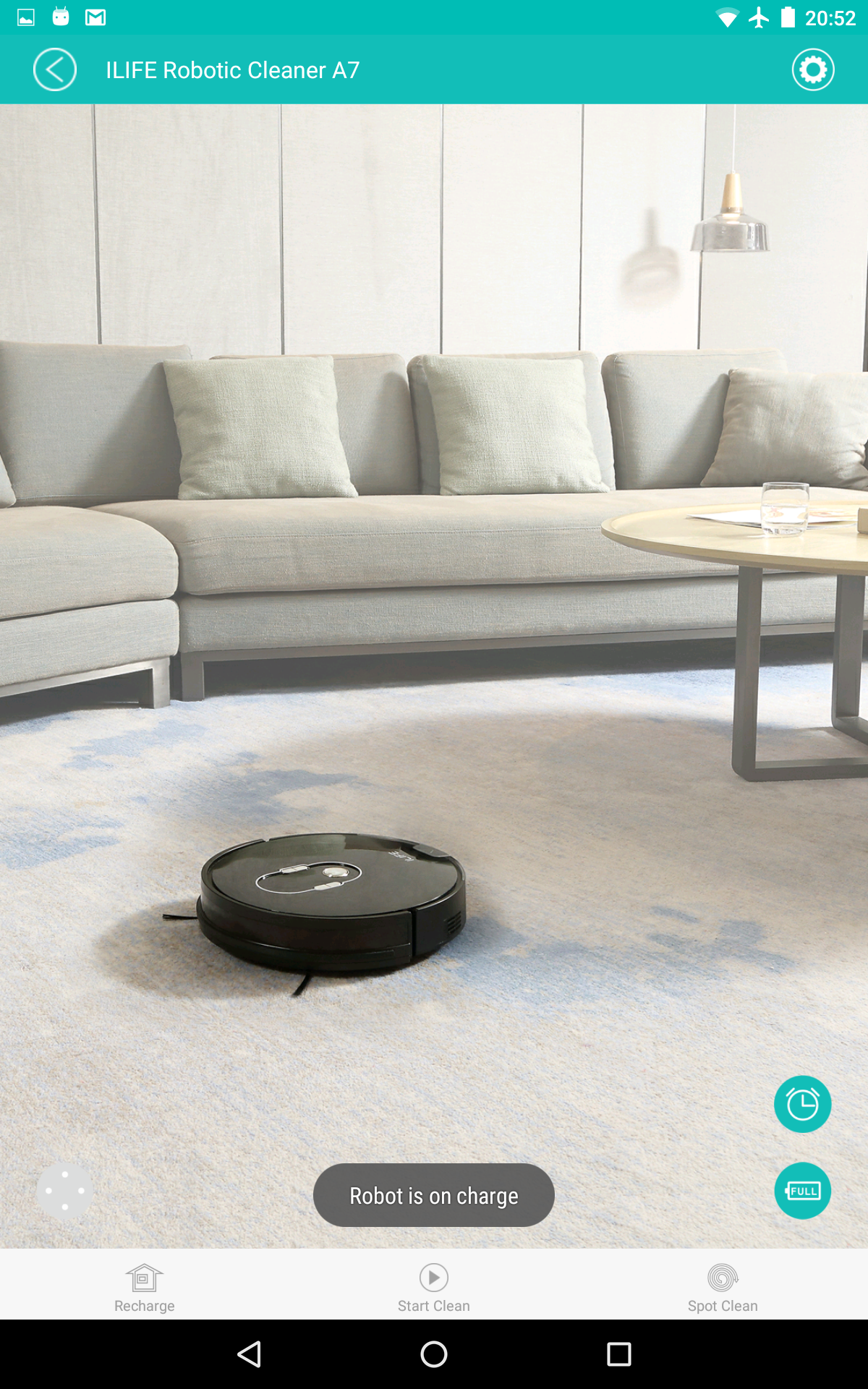 Приложение пока не русифицировано, но, возможно, будет. Хорошо, что по умолчанию для интерфейса выбирается английский язык. Запустив приложение первый раз, нужно установить связь с роботом, который должен быть в радиусе действия Wi-Fi-сети (и, видимо, только 2,4 ГГц). Для управления роботом, возможно, используется глобальный облачный сервис, по крайней мере, нам удалось запустить робота, находясь в области действия другой сети Wi-Fi. В приложении удобно задавать расписание уборки, можно менять режим, управлять мощностью вентилятора, отслеживать ресурс щеток и фильтра, а функция Find Robot, поможет найти робота — он подаст звуковые сигналы. Также приложение можно использовать в качестве пульта ДУ.