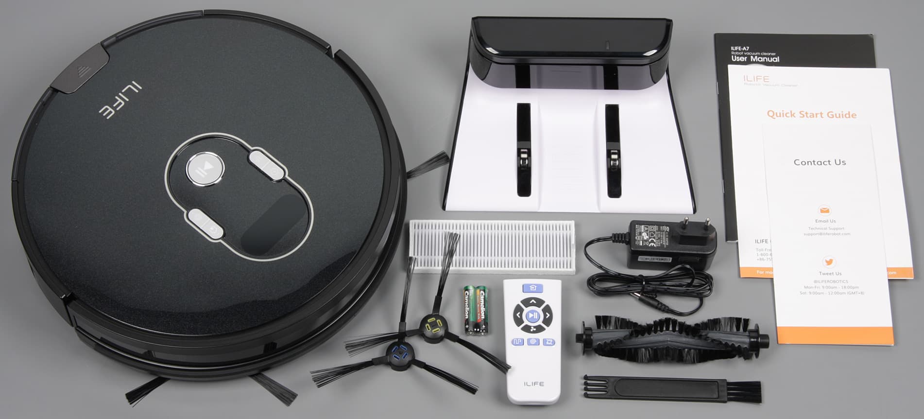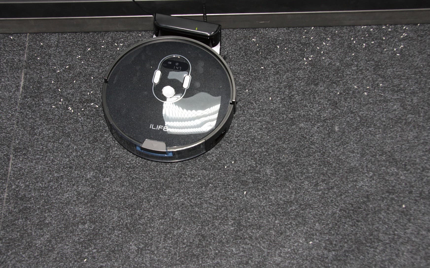 В автоматическом режиме или в режиме уборки змейкой iLife A7 последовательно участок за участком убирает доступную ему площадь помещения и возвращается на базу для зарядки аккумулятора. Качество уборки в режиме уборки змейкой высокое, но этот режим не используется при запуске по расписанию. При необходимости пользователь может увеличить мощность вентилятора, что улучшит эффективность уборки легкого мусора, но и сократит время работы. Также можно вручную управлять движением робота, включать режимы интенсивной очистки локального участка и очистки вдоль стен. Робот комплектуется безворсовой резиновой щеткой, на которую в меньшей степени наматываются волосы, шерсть, нитки и пр., это особенно оценят владельцы домашних животных.