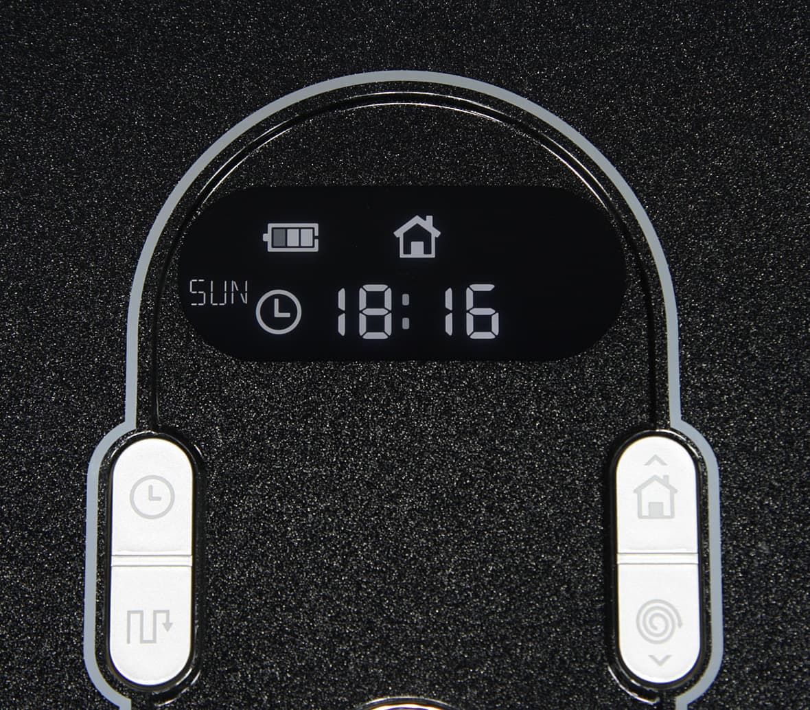 Перед кнопками находится сегментный инвертированный ЖК-дисплей с белым свечением. Дополнительно о своем состоянии робот информирует с помощью коротких и не очень громких звуковых сигналов. Отключить звуковое оповещение нельзя.