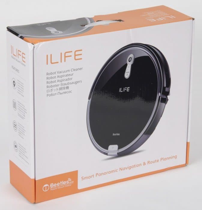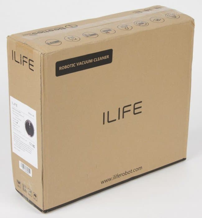 Робот-пылесос iLife A8 упакован в две коробки — внешнюю защитную из толстого гофрокартона, и внутреннюю из картона потоньше и уже с ручкой.