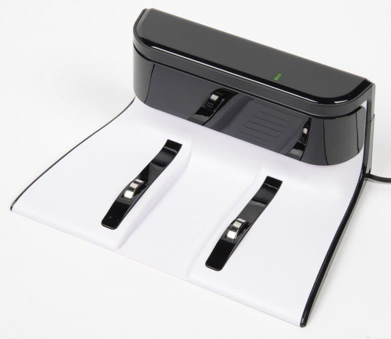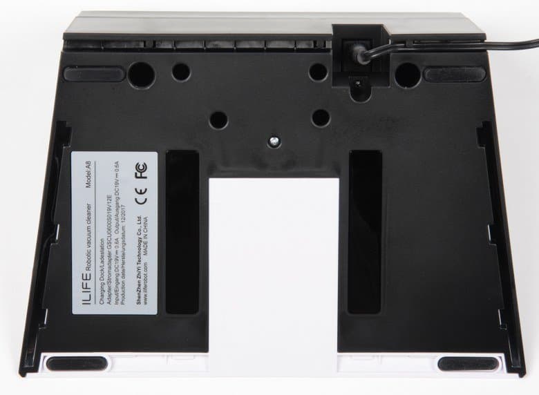 Питается база от внешнего адаптера питания, который также можно использовать для зарядки робота, минуя базу, если по какой-то причине она недоступна. Кабель можно уложить в каналы на днище базы и вывести на правую или на левую сторону.
